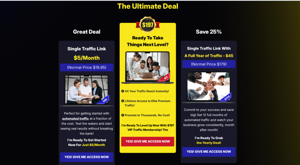 It automates many tedious aspects of traffic generation, allowing you to focus more on offer optimisation and conversion strategy. Its AI driven traffic sourcing, real- time analytics and scaleable plans make it a solid contender in the traffic tool space.