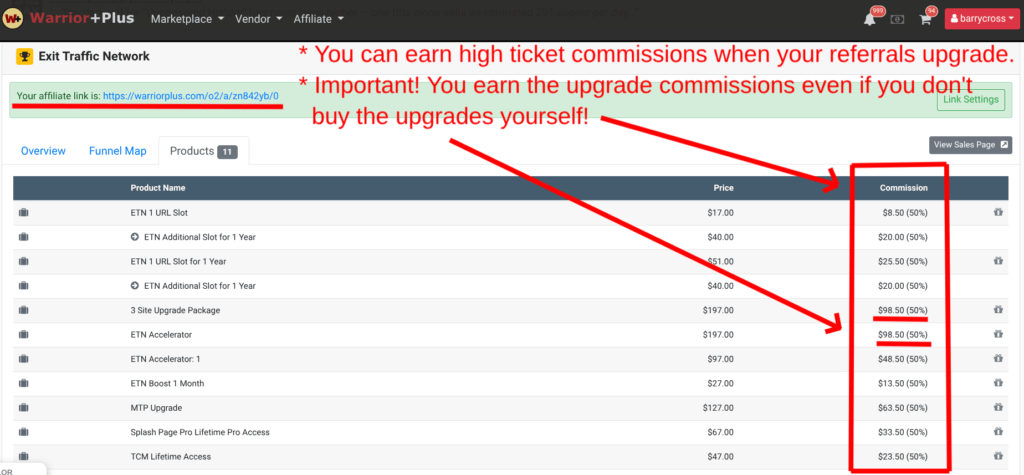 See my image below where I show you the upgraded products that your referrals will be introduced to once they join the Exit Traffic Network.