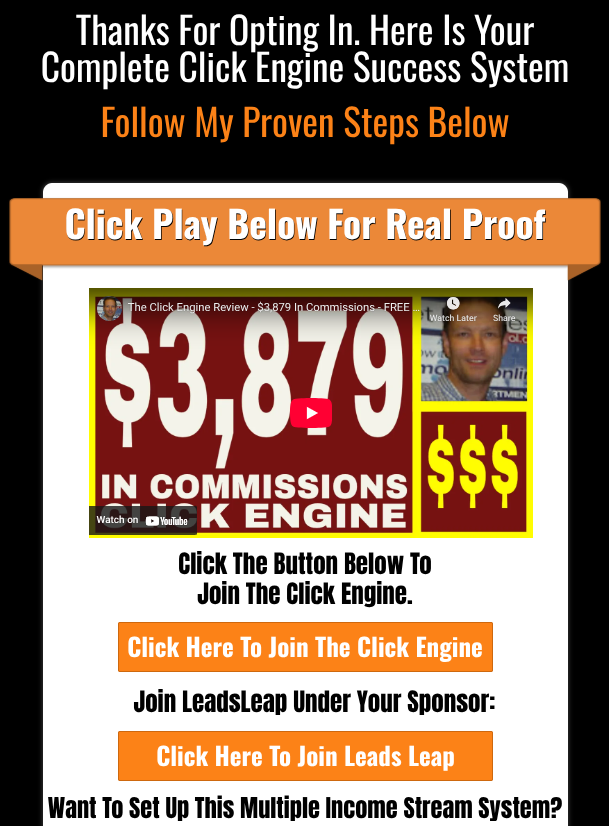 Click the image below to take you to an example of our “Click Engine Success System” where you’ll promote just 1 link & earn up to 7 income streams.