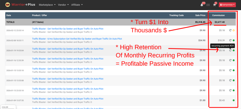 See the image below of my WarriorPlus account sharing real income proof & an example of a high retention of monthly paying referrals.
