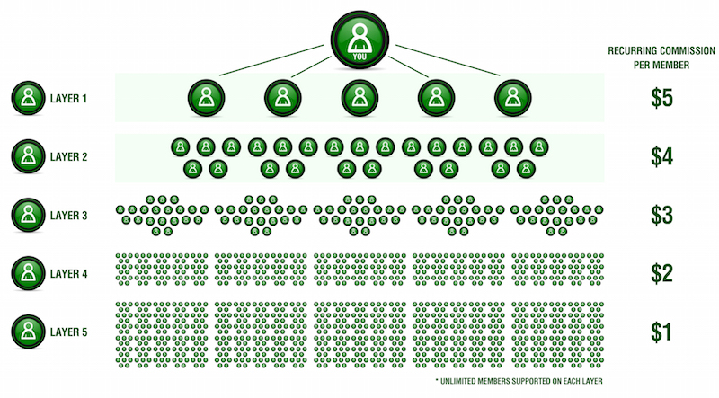 - Your affiliate commissions are paid monthly & you get paid down 5 levels.
